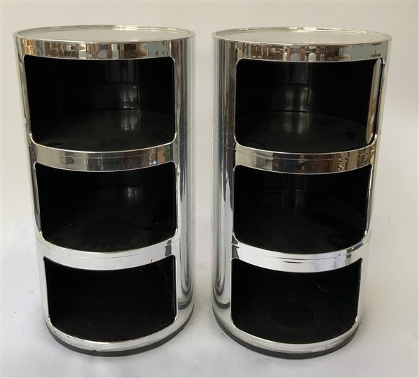 Coppia di comodini contenitore. Produzione Kartell, Milano, seconda metà secolo XX. Abs metallizzato. (h cm 58; d cm 32) (lievi difetti)