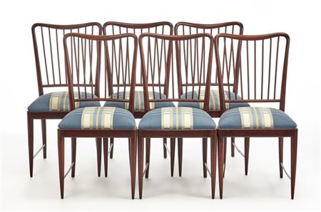Paolo Buffa Sei sedie in legno massello con seduta imbottita rivestita in tessut