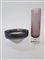 Lotto composto da un vaso cilindrico in vetro sommerso trasparente incolore e ametista chiaro e una ciotola centrotavola di forma conica in vetro trasparente incolore con bordo fumè. Anni '60. (vaso: h cm 29, d cm 8; ciotola: h cm 12, d cm 21) (difetti)