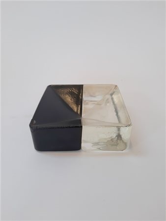 Posacenere in vetro massello trasparente incolore e nero. Anni '70. (cm 12x4x12) (difetti e restauri)