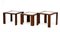 Gruppo di tre tavolini a nido con piano quadrato, struttura in legno di noce ma