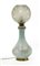 Lampada da tavolo con struttura in ottone, fusto in vetro soffiato azzurro con