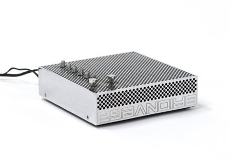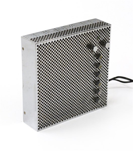 Filodiffusore modello "FD1102". Produzione Brionvega, Italia, 1969. Acciaio inox. Marcato sotto la base. (cm 20x20) (lievi difetti)