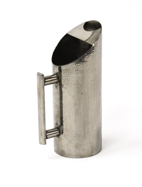 Brocca di forma cilindrica in acciaio martellinato. Italia, anni '90. (h cm 26,5) (lievi difetti)