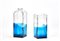 Lot composed of a square-section vase and a blue-colorless blown glass bottle. Murano, 1970s. Signed under the base. (Vase cm h23; bottle cm h 28.5)