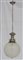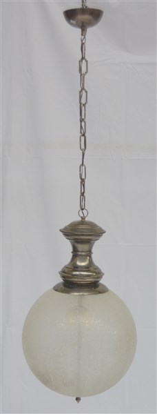 Lampada a sospensione con struttura in alluminio, sfera in vetro soffiato parzialmente acidato sulla superficie esterna. Italia, anni '70. (h cm 120; d cm 30) (lievi difetti)