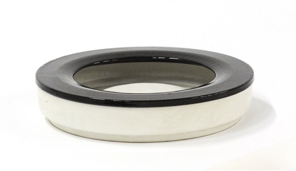 Portacenere in ceramica smaltata bianco e nero. Italia, anni '70. (d cm 28) (li