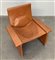 Poltrona imbottita e rivestita in similpelle color marrone. Italia, anni '60/'7