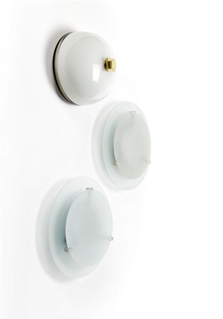 Lot comprising round ceiling lamps in frosted glass and another in lattimo glass