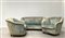 Salotto composto da due poltrone ed un divano a due posti con struttura in legno, imbottiti e rivestiti in velluto verde. Piedini troncoconici. (poltrone cm 75x70x70; divano cm 145x70x70) (difetti e mancanze)