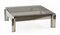 Tavolo da fumo con struttura in acciaio e piano in cristallo fumé. Italia, anni