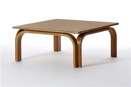 Tavolo da salotto. Produzione Linea Legno, Italia, disegno del 1974, esemplare di fine anni '70. Multistrato bordato e impiallacciato. (cm 90x41x90) (difetti)