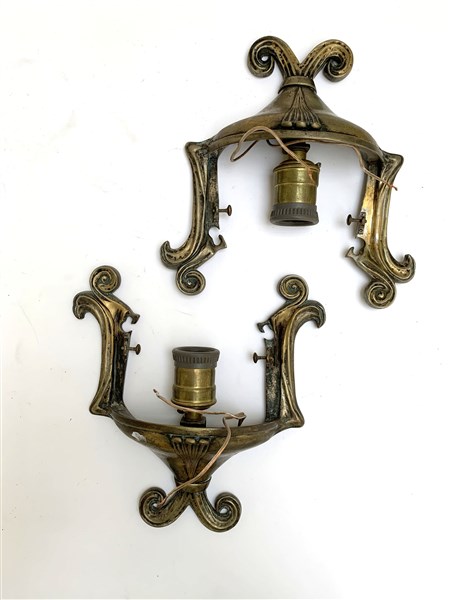 Coppia di appliques Art Nouveau con struttura in fusione di bronzo argentatata