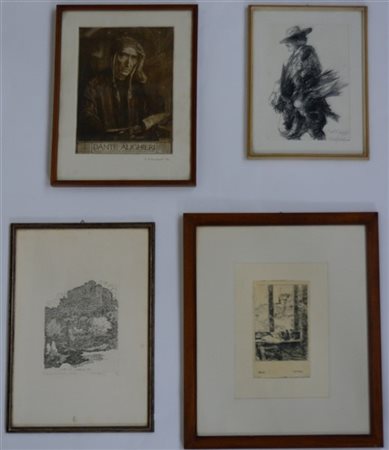 Lotto composto da tre incisioni e un disegno a pastello di autori e misure diff