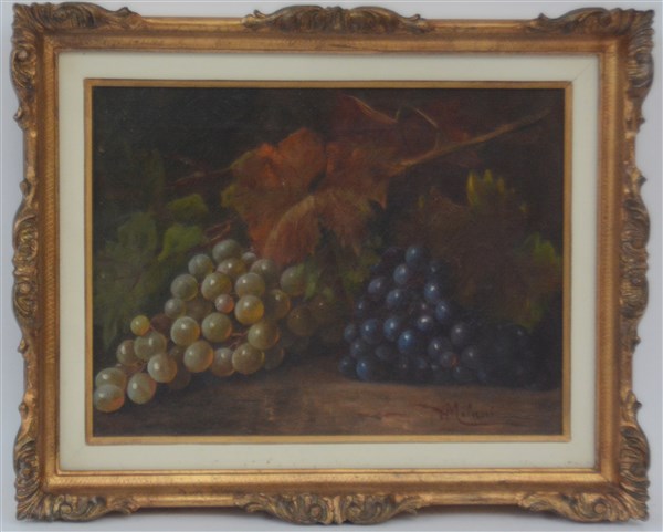 A. Milani "Grappoli d'uva" olio su tela (cm 30x40) Firmato in basso a destra. In