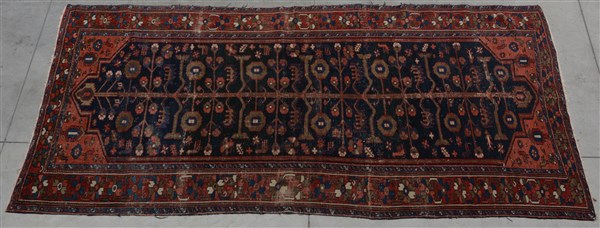 Decoro con albero della vita su fondo blu notte. Angolari color salmone. (cm 294x154) (difetti, rapature e ve chi restauri)