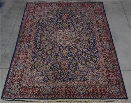 Tappeto orientale, secolo XX. Decoro con medaglione polilobato bianco su fondo