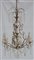 Lampadario in metallo dorato a sei fiamme decorato a foglie e pendenti (h cm 80) (difetti)