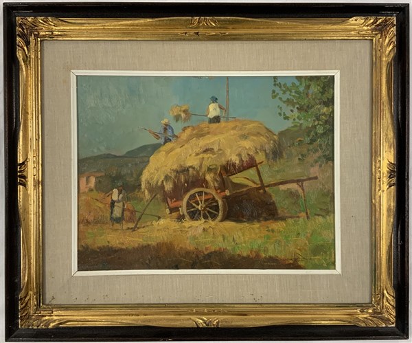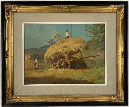 "In campagna" olio su compensato (cm 30x40) Firmato in basso a destra. Al retro: titolato, firmato e datato 1967. In cornice