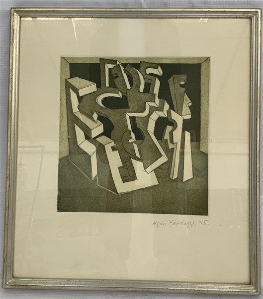 Alfredo Bortoluzzi "Senza titolo" 1975 acquaforte cm 50x45 (foglio). In cornice