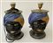 Coppia di vasi montati a lampada in ceramica policroma raffiguranti volti masch