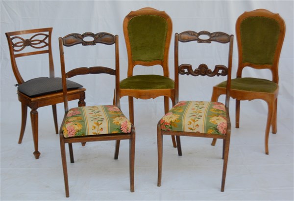 Lotto di cinque sedie di fatture ed epoche differenti (difetti)