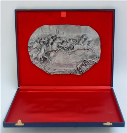 Placca decorativa in metallo raffigurante La Carica dei Carabinieri a Pastrengo (cm 27x18,5), in custodia