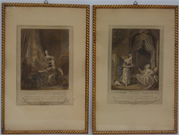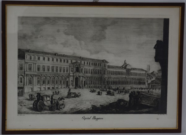 Lotto di cinque incisioni di soggetti, epoche e dimensioni differenti, in cornici (difetti)