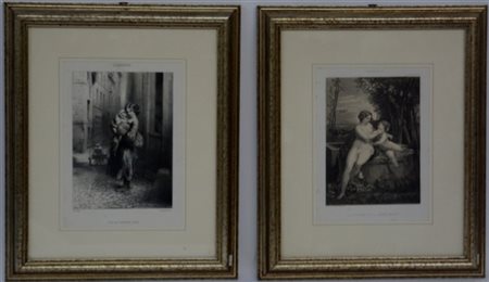 Lotto di cinque incisioni di soggetti, epoche e dimensioni differenti, in corni