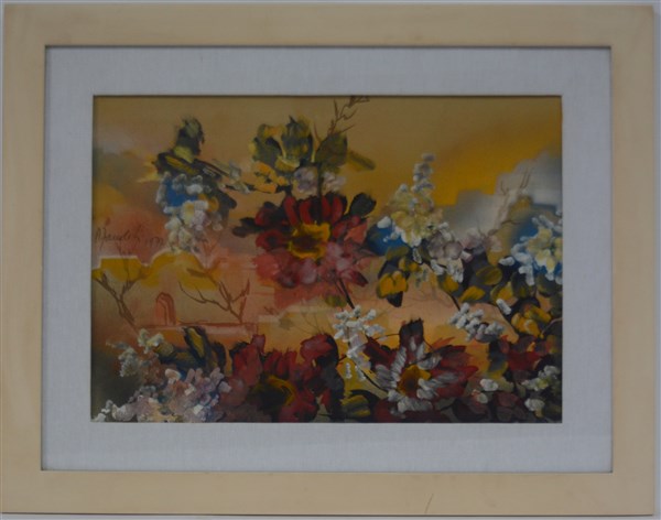 Lotto composto da due tecnice miste su carta raffiguranti fiori