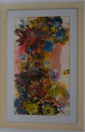 Zanoletti Lotto composto da due tecnice miste su carta raffiguranti fiori misure