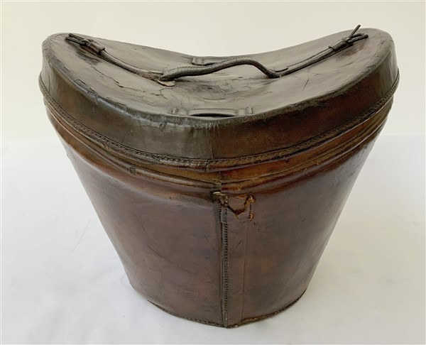 Cappelliera francese in cuoio. etichetta del produttore all'interno (h cm 32) (difetti)