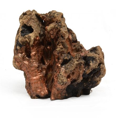 Lampada da appoggio ricavata da una grossa radice. Italia, anni '80. (cm 73x64x