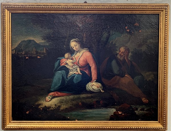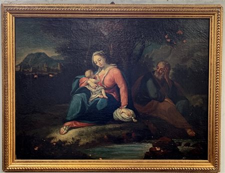 Scuola del secolo XVIII "Riposo durante la fuga in Egitto" olio su tela (cm 76x