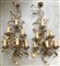 Quattro appliques a sei fiamme in metallo dorato a forma di rami con fiori e fo