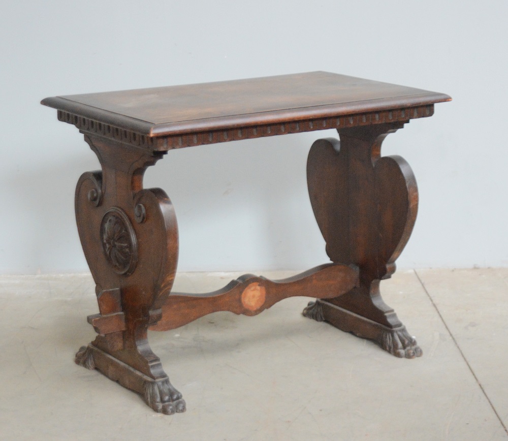 Tavolino "rinascimentale" con sostegni ad asso di coppe (cm 81x55x51) (difetti)