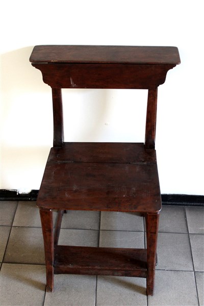 Sedia inginocchiatoio con anta, cassetto e piano apribile, secolo XIX (cm 50x83x56) (difetti)