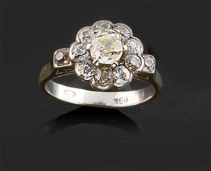 di vecchio taglio circondato da diamanti di vecchio taglio per complessivi ct 1,40 ca