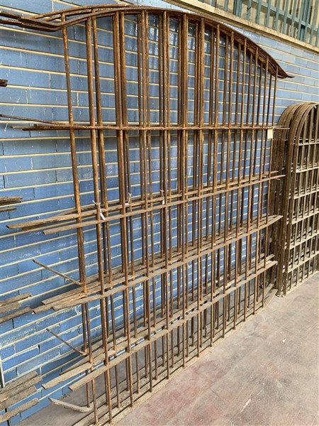 Gruppo di quattro antiche inferriate in ferro battuto (cm 210x220) (difetti)