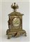 ANONIMO, Francia . Pendola in metallo dorato con cassa guarnita da teste leonine e sormontata da decoro in foggia di vaso biansato. Epoca ultimo quarto secolo XIX. Movimento con suoneria delle ore e mezze su campanello. Quadrante a cartouches smaltate a numeri romani. Misura h. cm 43. (difetti)