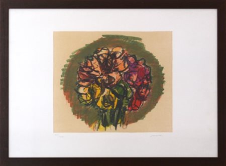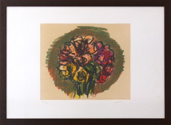 Ennio Morlotti "Fiori" litografia a colori, cm 50x68 Firmata e numerata XXIII/XX