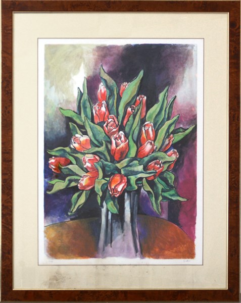 Renato Guttuso "Tulipani" litografia a colori, cm 73x54 Firmata e numerata 52/9