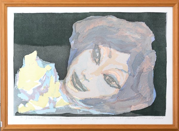 Mino Maccari "Senza titolo" litografia a colori, cm 50x70 Firmata e dedicata in