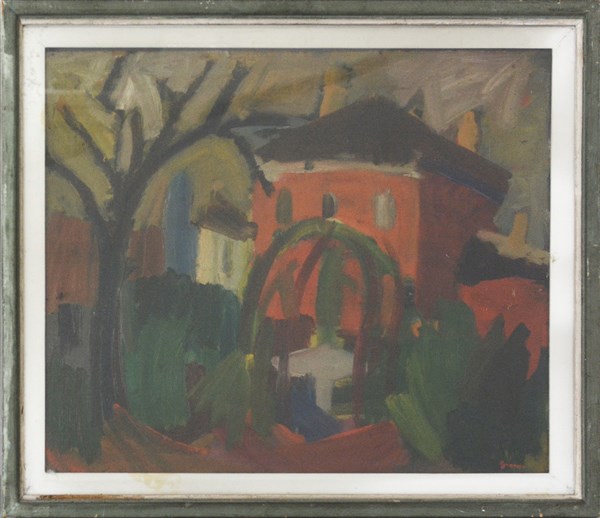 Piero Giunni "Paesaggio" olio su cartone telato, cm 50x60 Firmato in basso a de