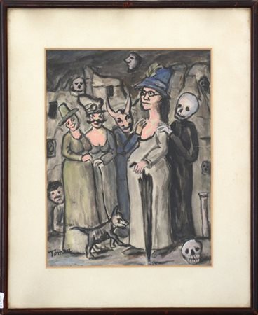 Fiorenzo Tomea "Senza titolo" tempera e tecnica mista su carta, cm 31x24 Firmat