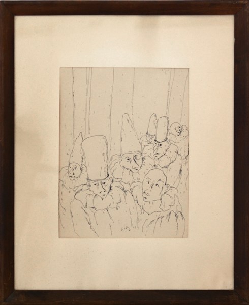 Guido Polo "Arlecchini" 1950 china su carta, cm 30x23 Firmato e datato in basso