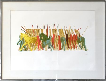 Mario Ceroli Figure maschili con cavalli, 1979 litografia a colori su cartoncino
