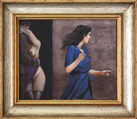 Raul Heredia "Andando a casa" 1979, olio su tela, cm 25x30 Firmato in basso a d