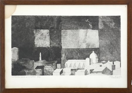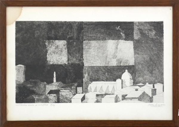 Neri Pozza "Ventesima veduta di Vicenza" acquaforte, cm 34x50 (foglio) Firmata,