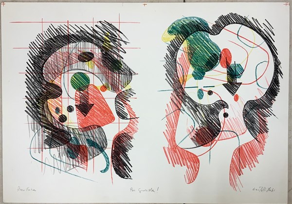 Gino Marotta Senza titolo litografia su carta cm 35x50 Prova d'autore dedicata e